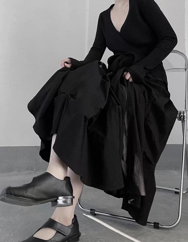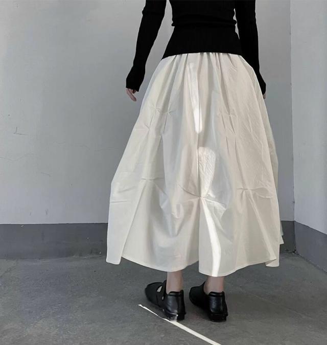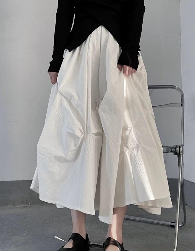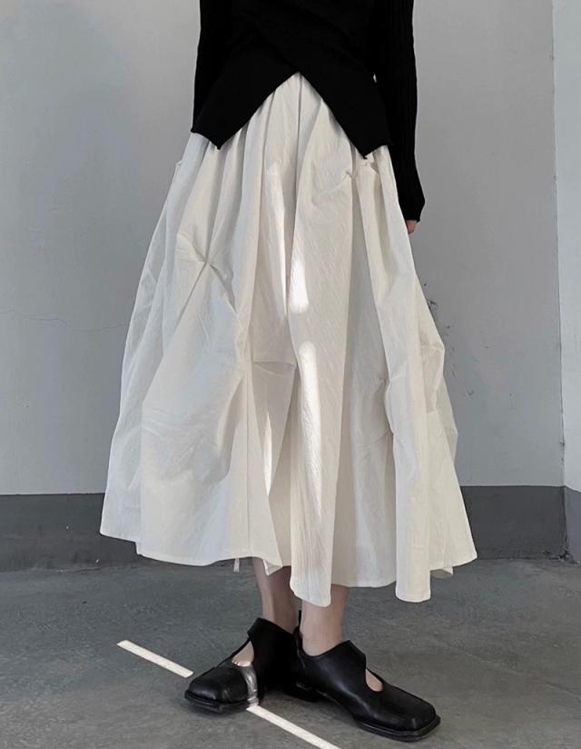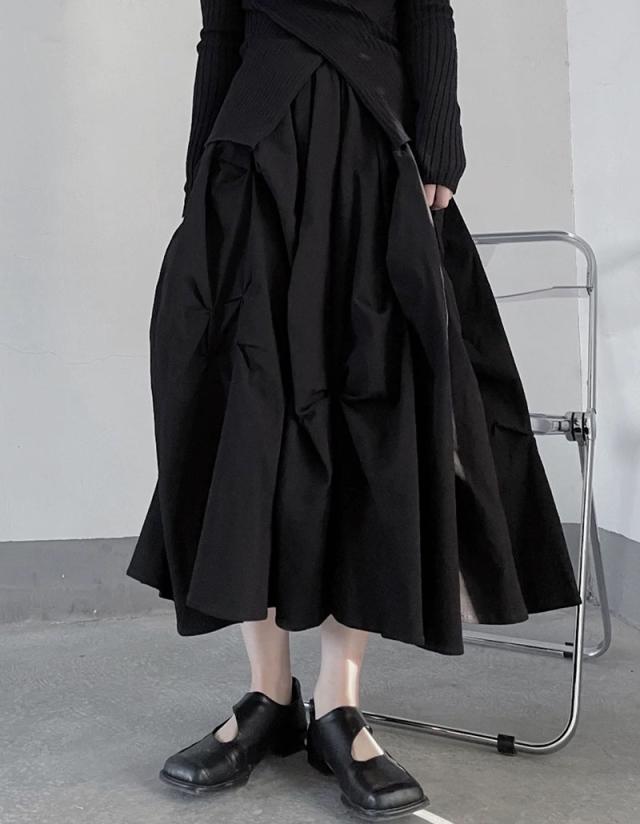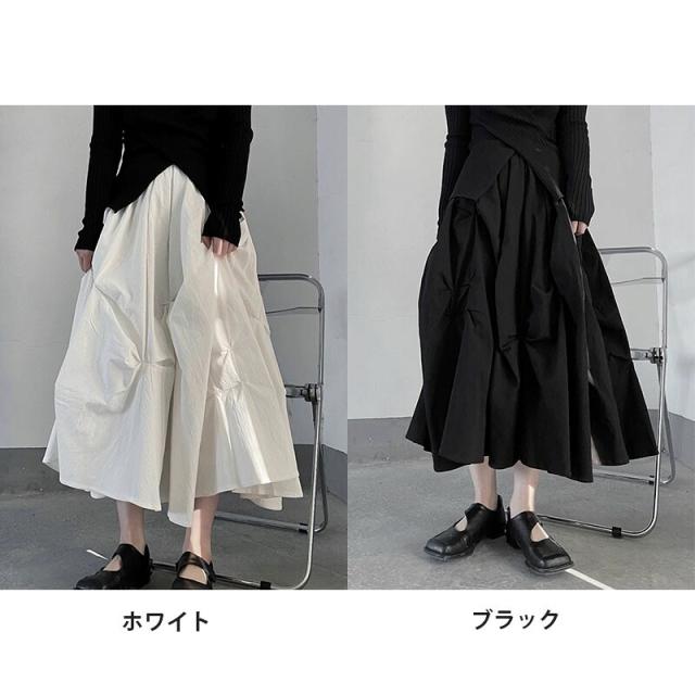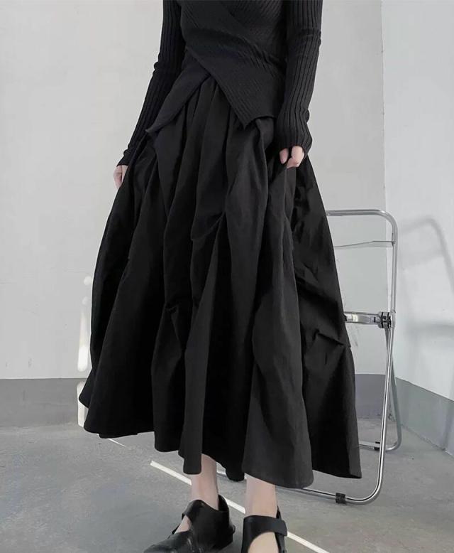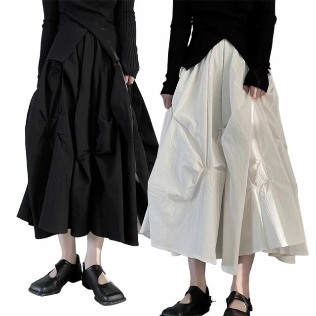 ヤマモト風 プレッツド フワフワスカート レディース 立体プリーツ 高級仕立て 重厚ワーク 限定カラー(ブラック/ホワイト