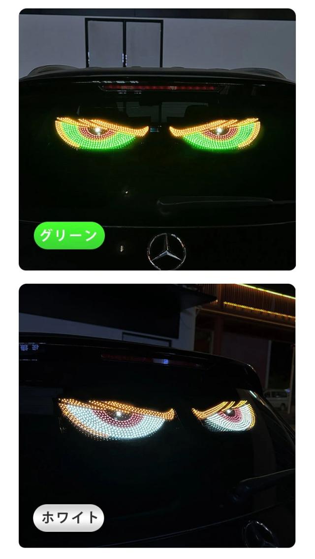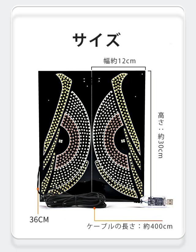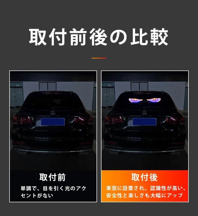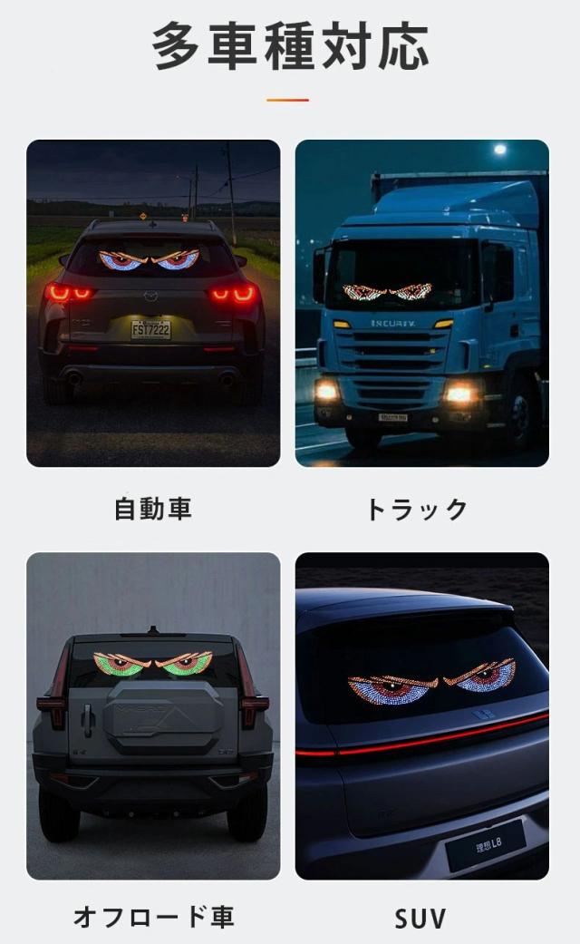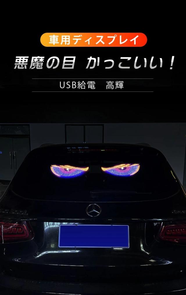 2個セット 車用悪魔の目 車用デビルアイライト LEDディスプレイスクリーン かっこいい LEDサイン 悪魔の目 カラフル LEDディスプレイ 超薄型 ライト USB給電 LEDスマート 自動車 トラック 窓用
