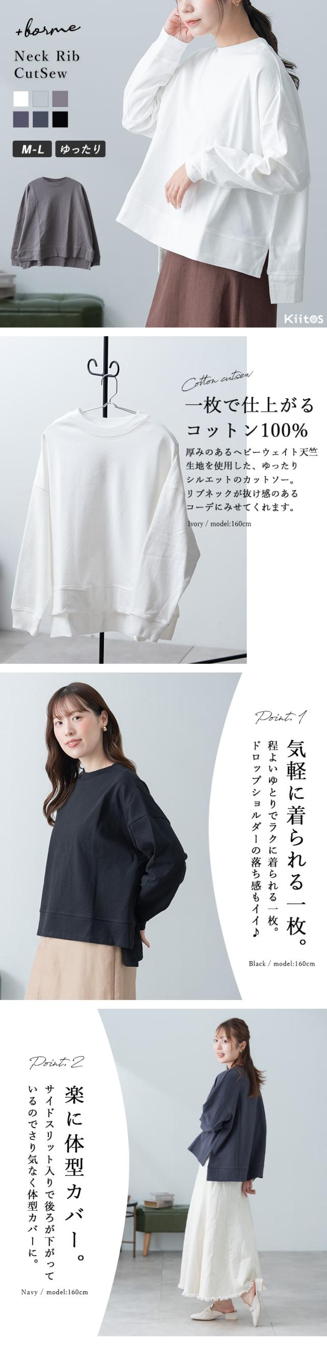 首元・袖口・裾にはしっかりめのリブを施しており、よれにくく長く使えるアイテムです。