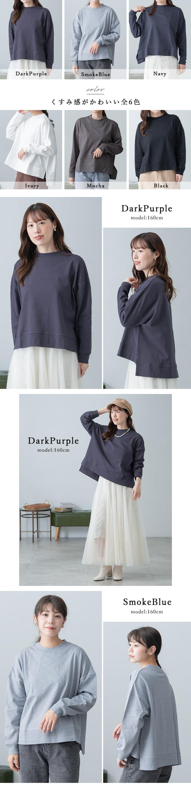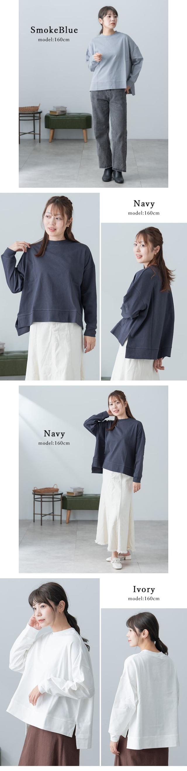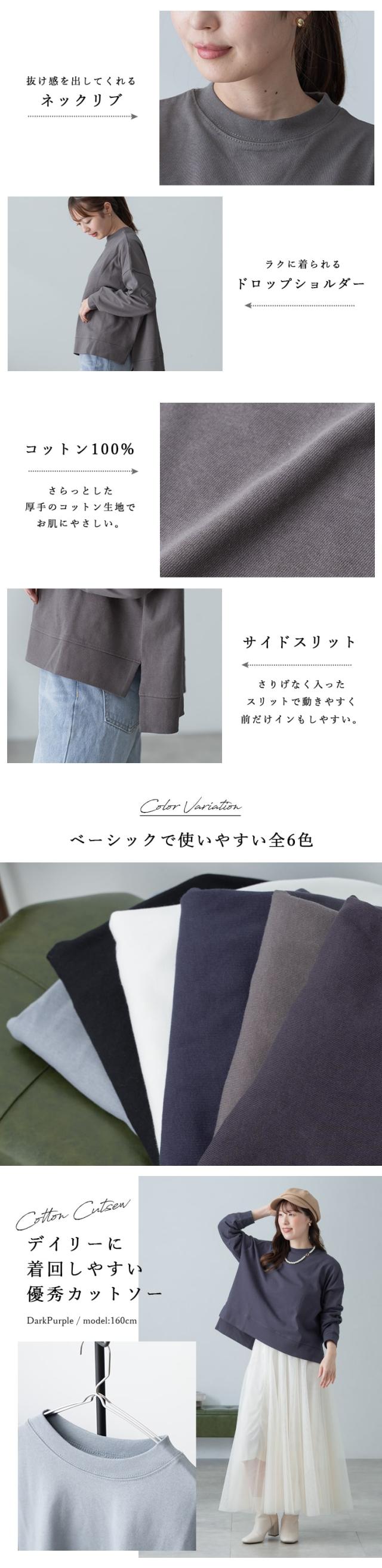 プルオーバー カットソー レディース 長袖 ヘビーウェイト コットン 綿 スリット入り 体系カバー クルーネック uネック tシャツ ロンT おしりが隠れる ゆったり 大きめ おしゃれ かわいい