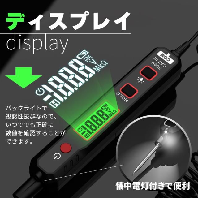 電圧測定・導通チェック・バッテリー電圧確認が1台で簡単に行えます。