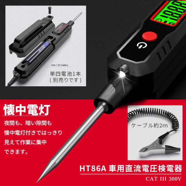 HT86Aは、自動車・バイクなどの直流回路の点検に最適なデジタル電圧検電器です。