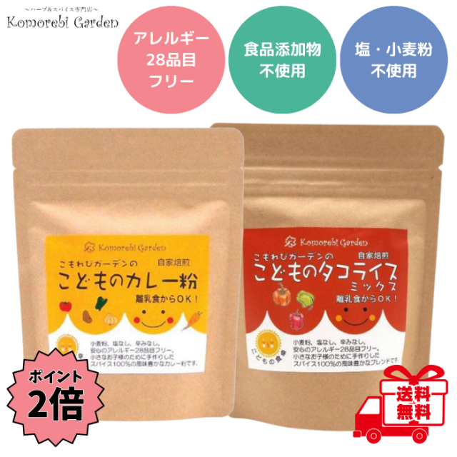 こもれびガーデン こどものカレー粉 90g こどものタコライスミックス 90g 各1個 アソートセット 無添加 離乳食 タコライスの素 甘口 ベビーフード 1歳 アレルギー28品目フリー 粉末 小麦粉不使用 スパイス 送料無料