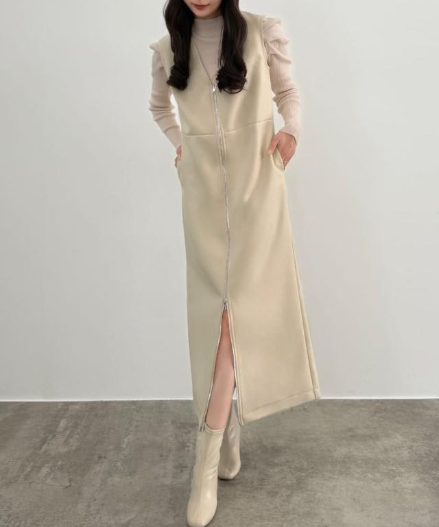 セネア(CENEA)/CENEA 裏起毛フロントファスナージャンパースカート