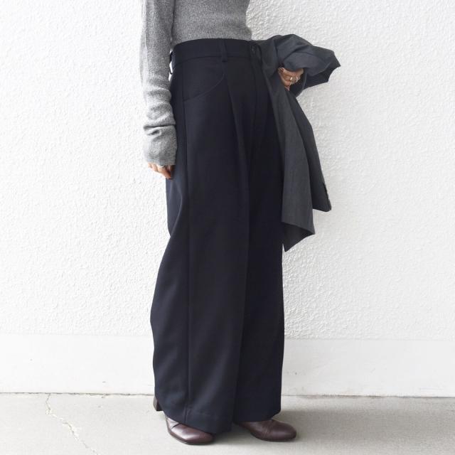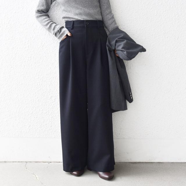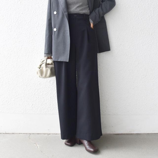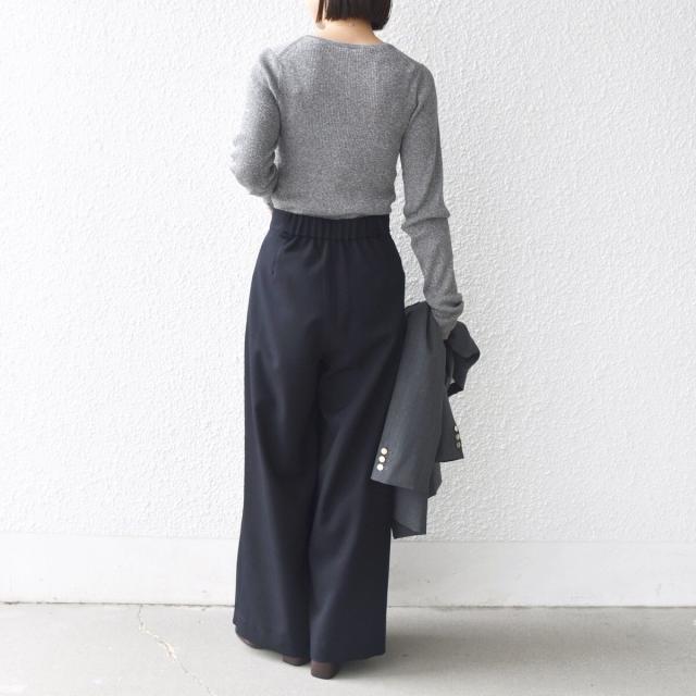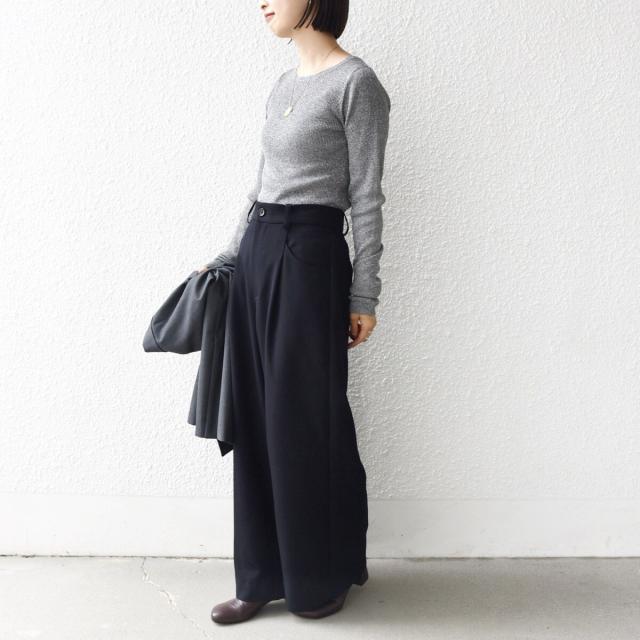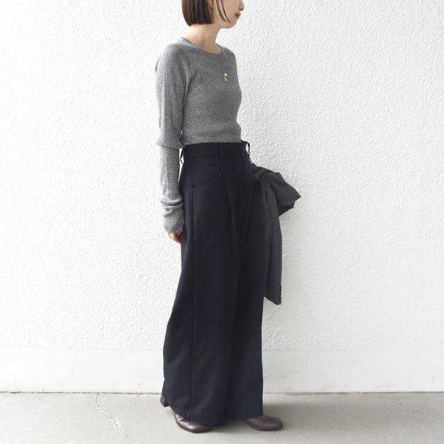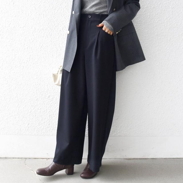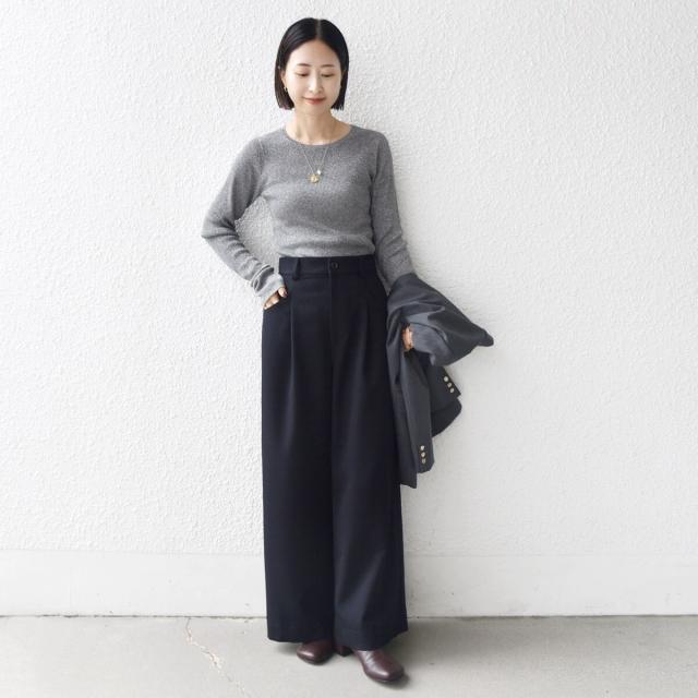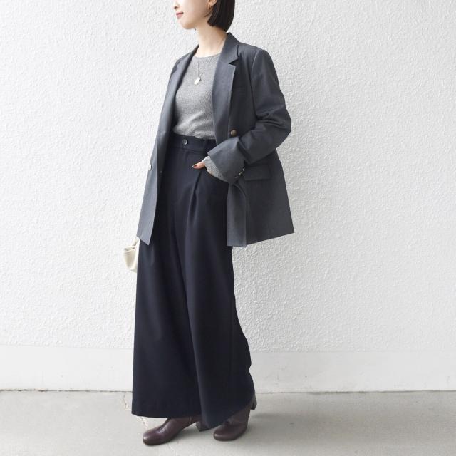 形はワイドですが落ち感のある素材ですので程よいワイド感ですっきりとした印象で着ていただけます。