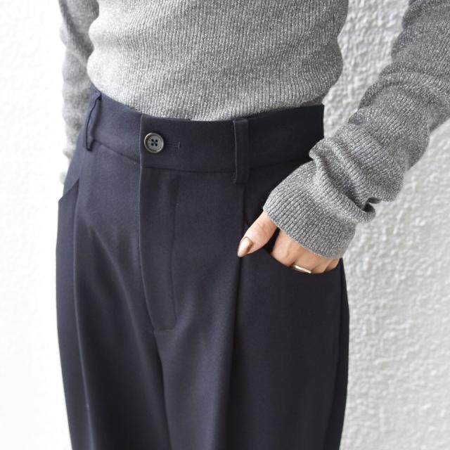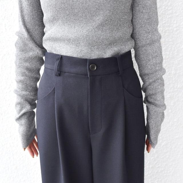 少しハイウエストのデザインですのでトップスをインしていただくとよりパンツのきれいさが伝わります。