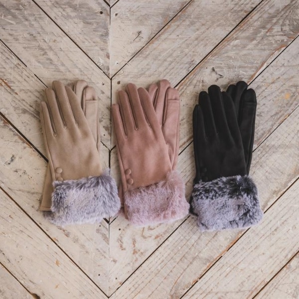 ツートーンのフェイクファーで上品な印象に仕上げたスエード調グローブが登場。