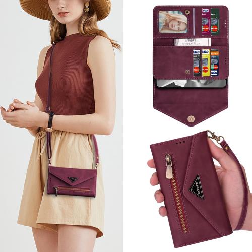 Cavor iPhone 16e 対応スマホケース肩掛け首かけ 斜めがけ アイフォン16e ショルダーケース iPhone16e 手帳型ケース封筒のデザインiPhone16e カード収納ケース多財布デザインiPhone16e case クロスボディケースカード磁気ボタン機能 ICカードホルダー 二つ折り財布ワインレッド