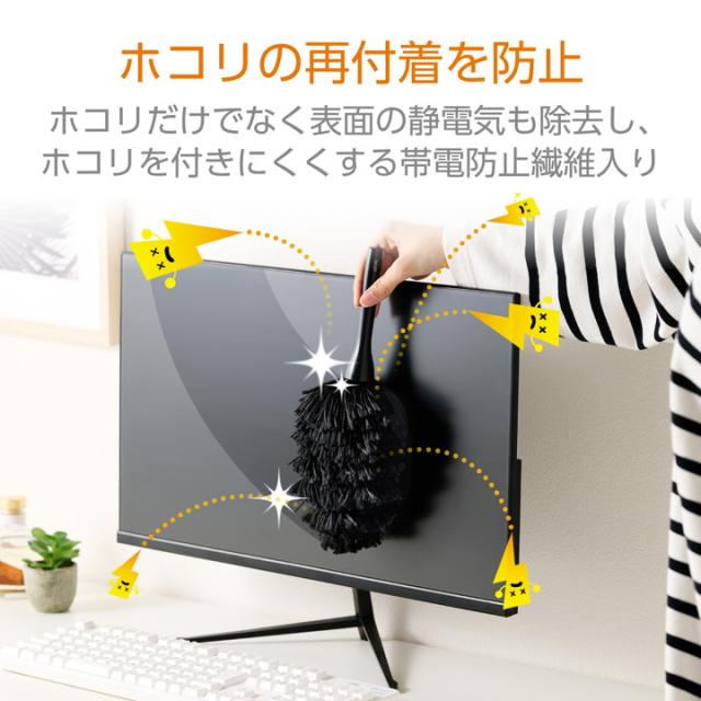 マグネット付きでピタッ!と取り付けて収納できる、画面やOA機器の掃除に便利なクリーニングブラシです。帯電防止繊維入りのブラシが機器表面の静電気を除去し、ホコリを付きにくくする除電タイプです。![]() ■ディスプレイやOA機器のお掃除に最適なクリーニングブラシです。 ■幅広く付いたモップタイプのやわらかい毛が、液晶画面などのお掃除に最適です。 ■機器本体を傷つけにくい、毛足の長い、やわらかい毛を採用しています。 ■※画面が傷つく恐れがありますのでディスプレイに平行に撫でるようにしてはらってください。 ■マグネット付きの柄でデスクやキャビネットなどにピタッ!と取り付けて収納ができます。 ■帯電防止繊維入りのブラシがホコリと同時に機器表面の静電気も除去し、ホコリをつきにくくします。 ■毛が汚れた場合は、ぬるま湯で手洗いできるので清潔に保てます。 ■自社環境認定基準を1つ以上満たし、『THINK ECOLOGY』マークを表示した製品です。 ■環境保全に取り組み、製品の包装容器におけるプラスチック重量を、社内基準製品より20%以上削減した製品です。 ![]() ■サイズ:全長:幅約150mm×厚さ約150mm×高さ約310mm ■カラー:ブラック ■入り数:1本 ■重量:81g ■材質:柄:ABS・シリコン、毛材:帯電防止繊維・ポリエステル ■その他:除電タイプ、マグネット付き |