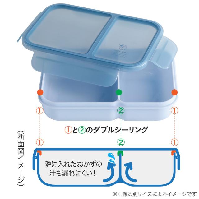 本体と中仕切りそれぞれにシーリング構造を採用し、密閉性を高めたお弁当箱です。カバンの中に立てて入れてもおかずの汁が漏れにくく、通勤や通学など持ち運ぶときにも安心です。荷物が増える日でも、軽さと丈夫さを兼ね備えた実用性が嬉しいポイントです。