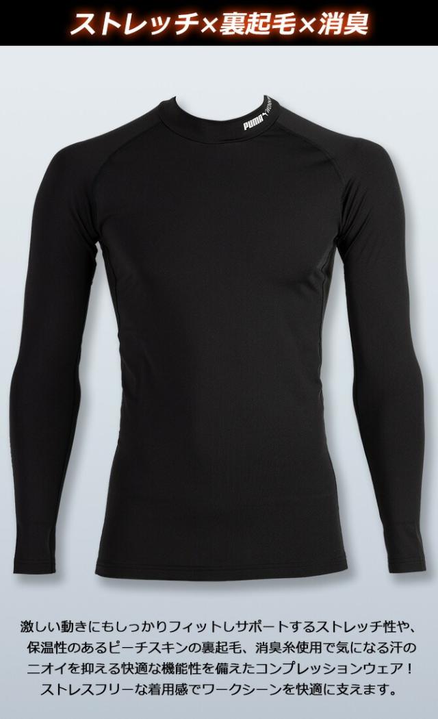 【1点までネコポス可】ホットコンプレッション 作業ウェア PUMA 長袖 モックネック パフォーマンスウェア プーマ ワークウェア ( PUMA WORKWEAR ) PW-2012W メンズ 秋冬 裏起毛 保温 消臭 ストレッチ サーマルストレッチシリーズ 作業服 作業着