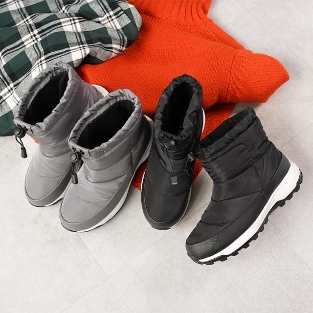 ブーツ 防水 撥水 防寒 スノーブーツ 厚底 4cmヒール ダウンブーツ ショートブーツ ウィンターブーツ レディース 冬 防滑 全2色 黒 S-LL 靴 シンプル ローヒール 疲れない 歩きやすい おしゃれ 雪 アウトドア 冬靴 あったか キャンプ 防災 紐 送料無料