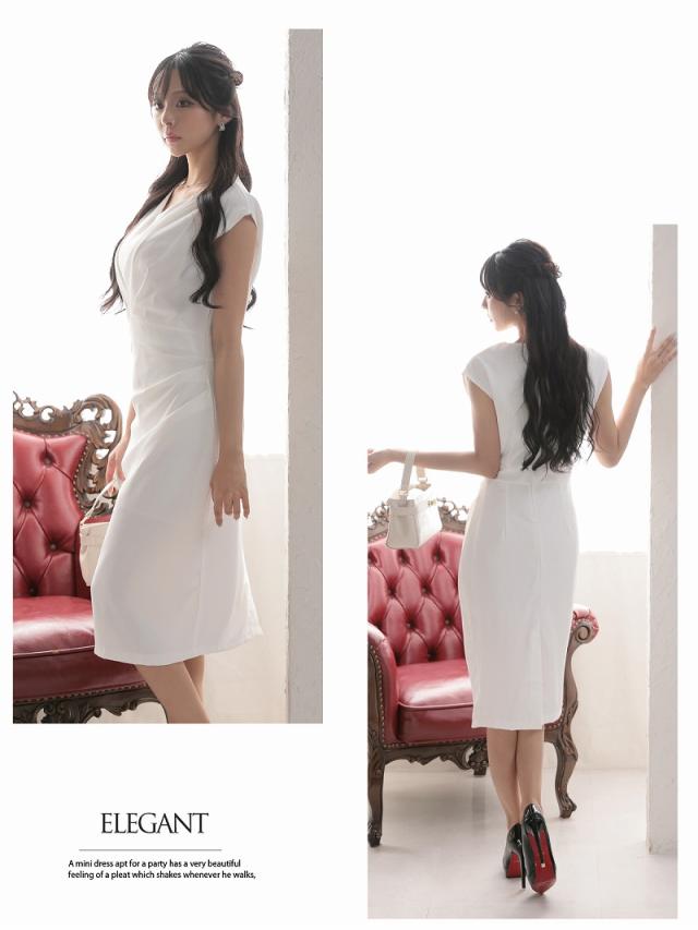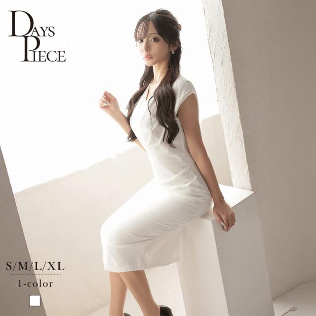 一部予約販売 キャバワンピース DaysPiece ホワイト 膝丈 ミディ丈 ノースリーブ カシュクール キャバ ワンピース