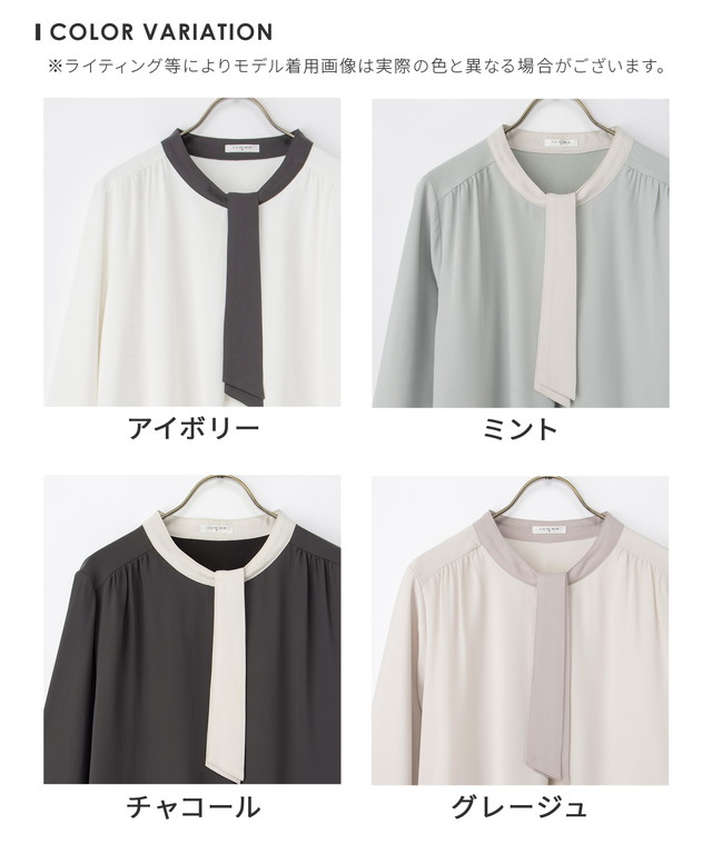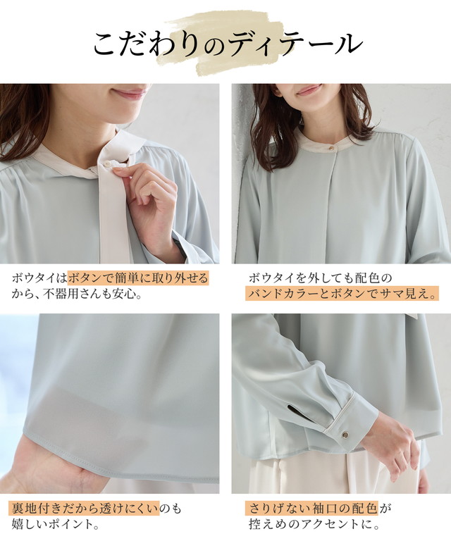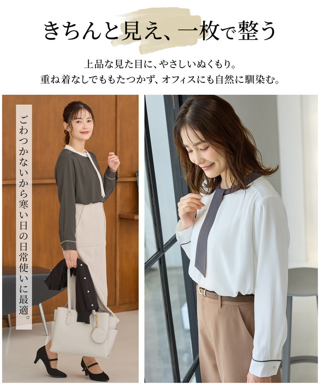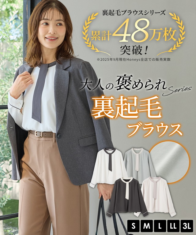 【商品名】【褒められ】裏起毛ボウタイブラウス