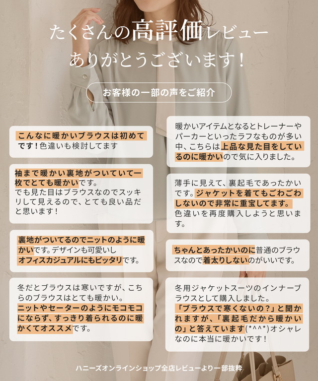 柔らかなジョーゼット素材に、裏起毛であたたかくソフトな肌触りの裏地が付いた『ハニぽか』アイテム。