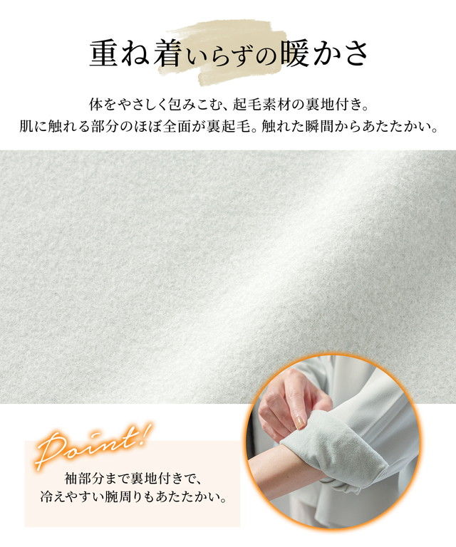 あったかインナーの重ね着が不要で、もたつかずスッキリなのにあったか。