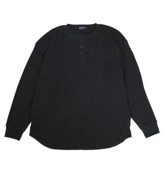 大きいサイズ EL.FO 無地ワッフル編みヘンリーネック長袖Tシャツ 3L 4L 5L 6L ブラック ラッピング可 送料無料 即日発送