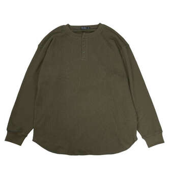 大きいサイズ EL.FO 無地ワッフル編みヘンリーネック長袖Tシャツ 3L 4L 5L 6L カーキ ラッピング可 送料無料 即日発送