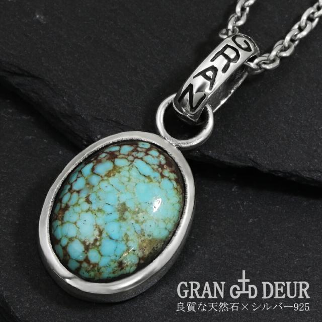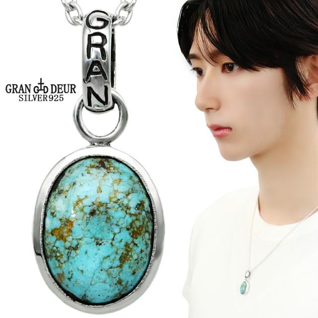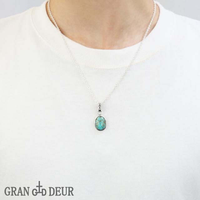 GRAN DEUR ターコイズ シルバー ネックレス ペンダント ペンダントトップ トルコ石 天然石 ブルー グリーン 青緑 オーバル 楕円 石 誕生石 12月