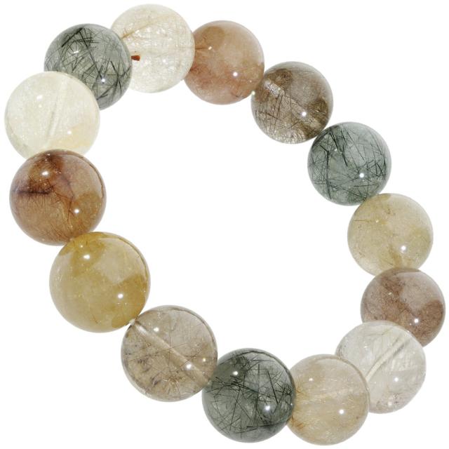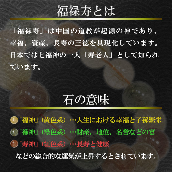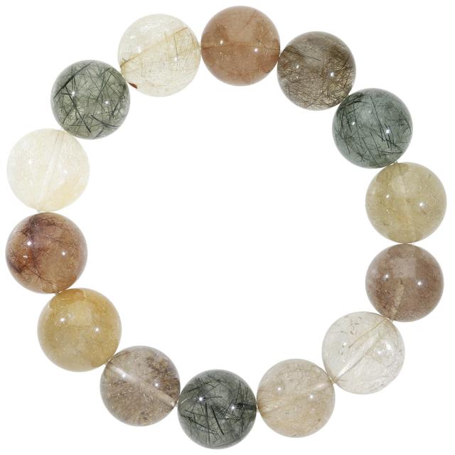 福禄寿 ルチルクォーツ ブレスレット 16.2mm 19.5cm メンズ L レディース LL サイズ 大玉 ミックス ゴールドルチル レッドルチル グリーンルチル 金運