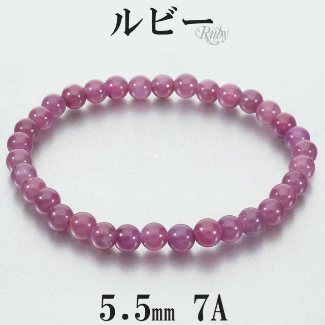 ルビー 7A グレード ブレスレット 5.5mm 17cm レディース M サイズ ルビーブレスレット 天然石 パワーストーン 腕輪 ブレス 数珠 7月 誕生石 レッド