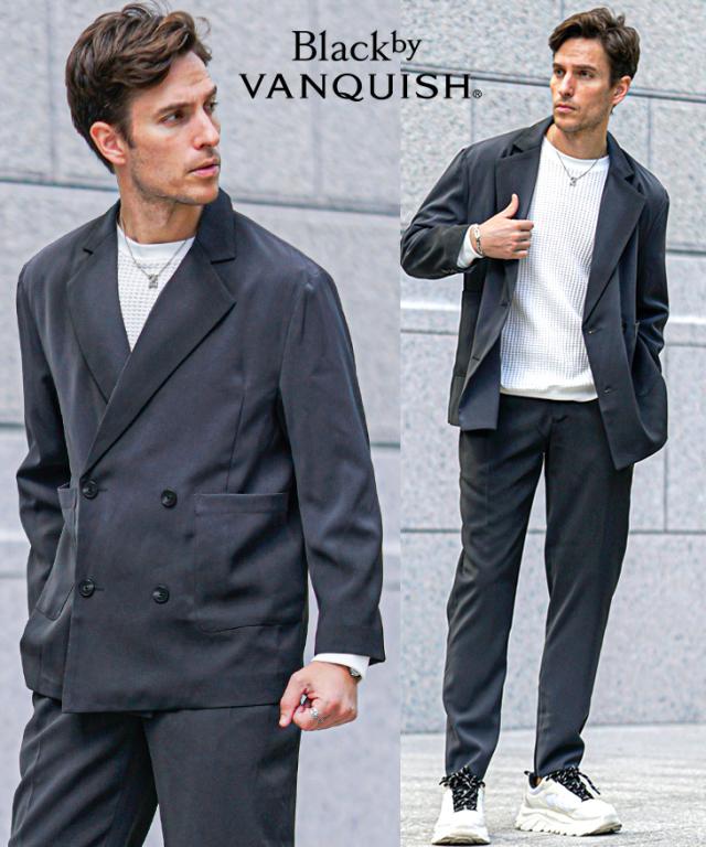 BlackbyVANQUISH 『グラデーション加工ジャケットセットアップ』【グラデーション加工ジャケットセットアップ】■Design/デザインBlackbyVANQUISHから、グレーのグラデーションが美しいジャケットセットアップが登場。トップスは長めの着丈と程よくゆとりのあるシルエットが、体型を美しく包み込み、フォーマルな場からカジュアルな日常まで、どんな場面でも馴染む万能性を発揮。ボトムスはゆとりのあるテーパードシルエット。足元に向かって細くなるデザインは、トレンドを取り入れ、動きやすさを確保する。着崩したようなシルエットやデザインがあなただけの特別なスタイルを引き出す。シンプルさに品格を、カジュアルさに重厚感を。
