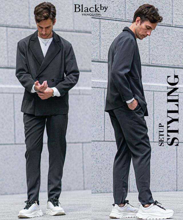 ダブルジャケットスーツ メンズ スーツ セットアップ ダブル テーラードジャケット グラデーション加工 グレー 上下セット カジュアルスーツ 細身 ホスト 秋 秋服 秋物 秋冬 メンズファッション お兄系 オラオラ系 ちょいワル Black by VANQUISH ブラックバイヴァンキッシュ