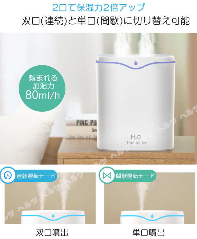 「5%OFFクーポン配布中」「即納」超音波加湿器 卓上 ダブルノズルポータブル 卓上加湿器 次亜塩素酸水対応 2200ml大容量 2種類加湿モード 空焚き防止 水漏れ防止 静音 保湿 USB給電式 暖房乾燥/花粉症対策 寝室 子供部屋 お手入れ簡単 オフィス 秋冬乾燥対策