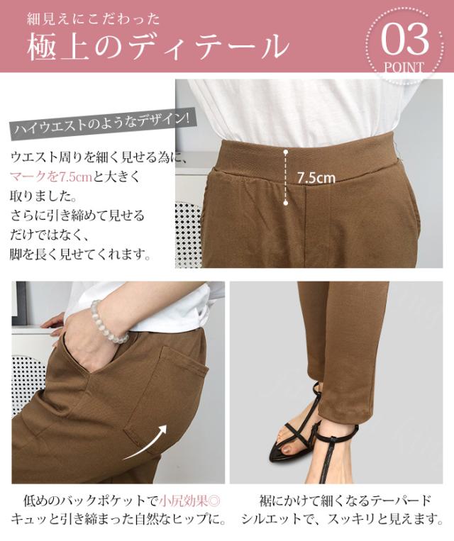 ・レギンスやスキニーよりもヒップ、太もも、足首にゆとりをプラスしたレギンスに代わる新しい脚長パンツ。体型を拾いにくいのでミセスファッションとしてもおすすめです。
