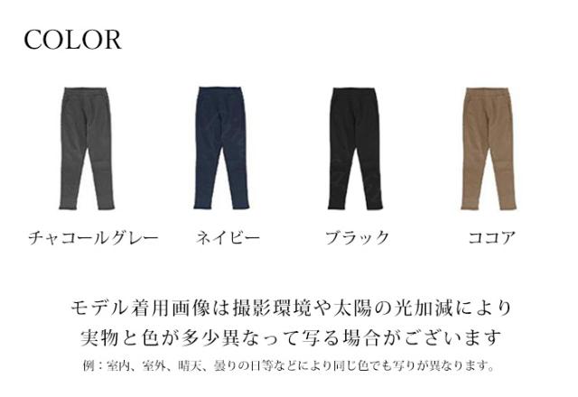 ・伸縮自在のストレッチ素材を使用しているので、どんなポーズにもアクティブにフィットします。伸縮性が優れている為、シルエットが長持ち。ウエストゴムでストレスフリーならくちんパンツ。