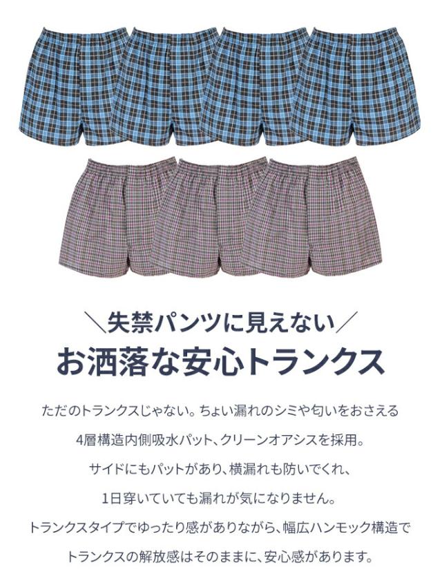 ファミラ 安心トランクス 失禁パンツ さわやか安心 トランクス 同サイズ2色7枚組 サイズ3L ピュアブリーズ 防水 消臭 抗菌 尿漏れ 防止 パンツ 吸水パッド付き 下着 男性用 軽度失禁用品 送料無料