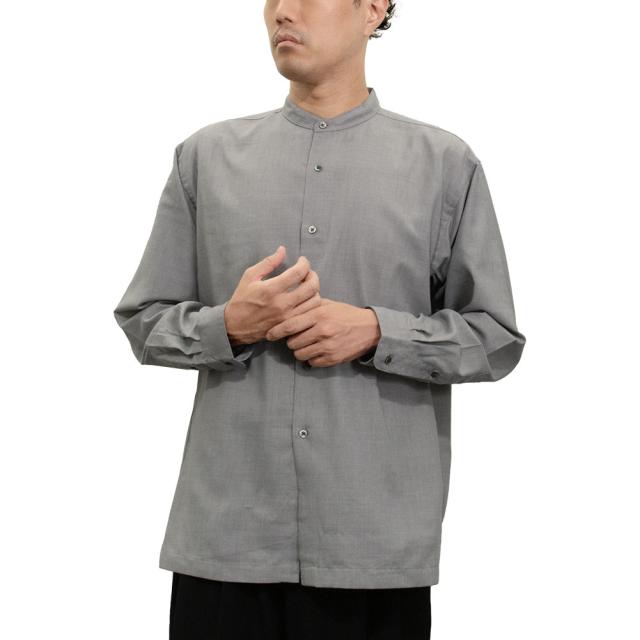 シャツ カジュアルシャツ スタンドカラー バンドカラー グレー 無地 メンズ レーヨン とろみ リラ【CNE902-280】