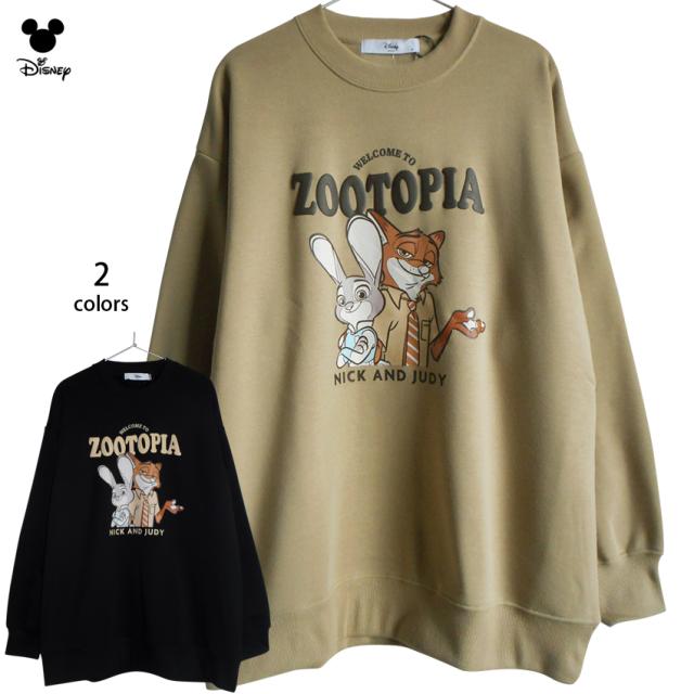 送料無料 ディズニー トレーナー ズートピア ZOOTOPIA スウェット 裏起毛 disney レディース メンズ ペアルック ニック ジュディ かわいい ディズニーランド うさぎ きつね サファリ 防寒 男女兼用 TDL 秋冬 ベージュ カーキ 黒