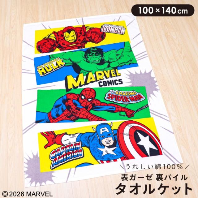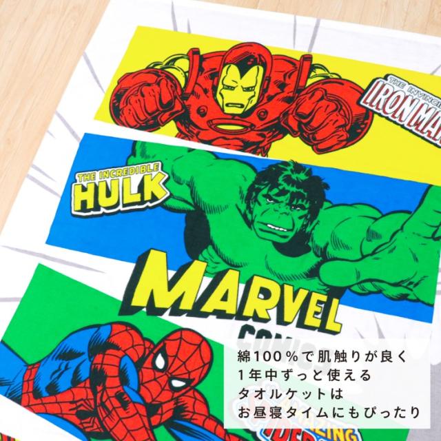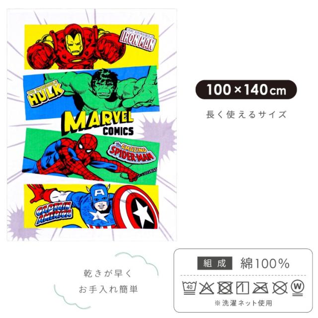 マーベル アベンジャーズ タオルケット ハーフケット 100×140cm 綿100% 表ガーゼ MARVEL 大判 ガーゼタオル 新品 キッズ お昼寝ケット 保育園 入園 スパイダーマン アイアンマン ハルク ホワイト un doudou メール便発送(対面受取) LP