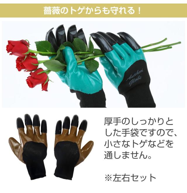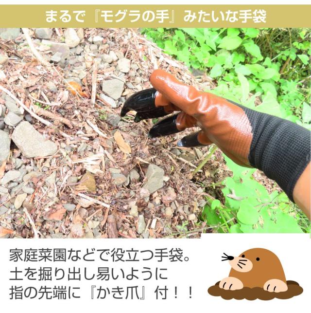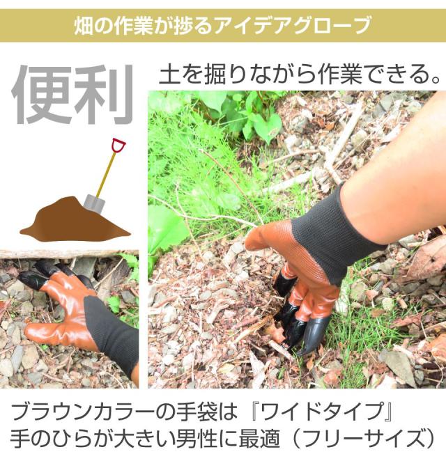 穴掘りグローブ ガーデングローブ グローブ 穴掘り 爪付き手袋 園芸用手袋 爪 園芸用品 爪付 手袋 作業手袋 穴掘り用 モグラの手グローブ ワイドサイズ ブラウン F21622 作業用手袋 収穫 左右セット ガーデニング 家庭菜園 穴 あなほり 土いじり スコップ不要 畑仕事