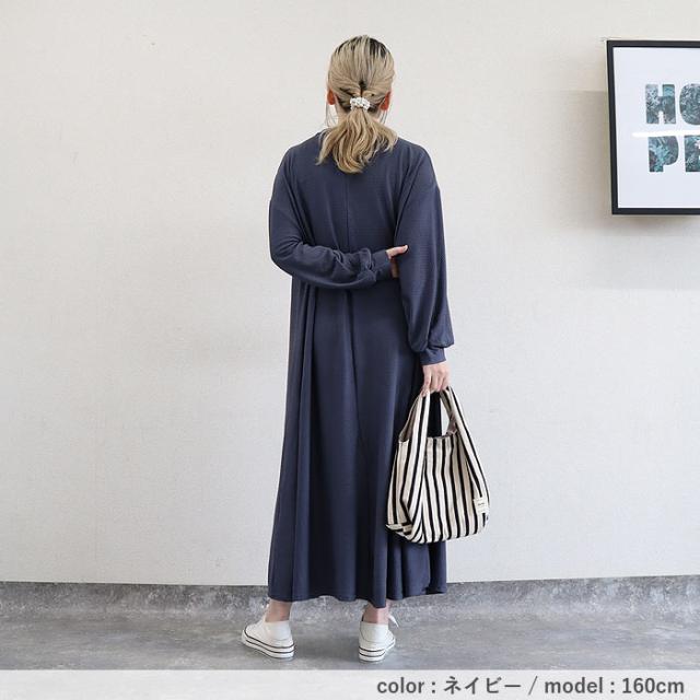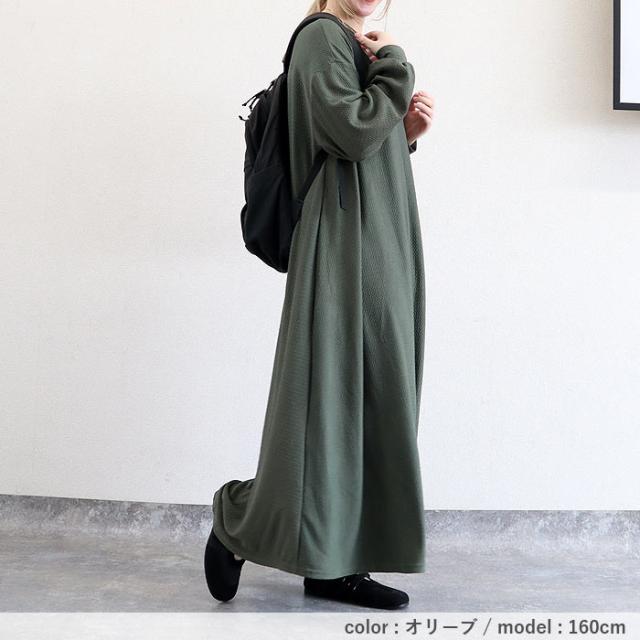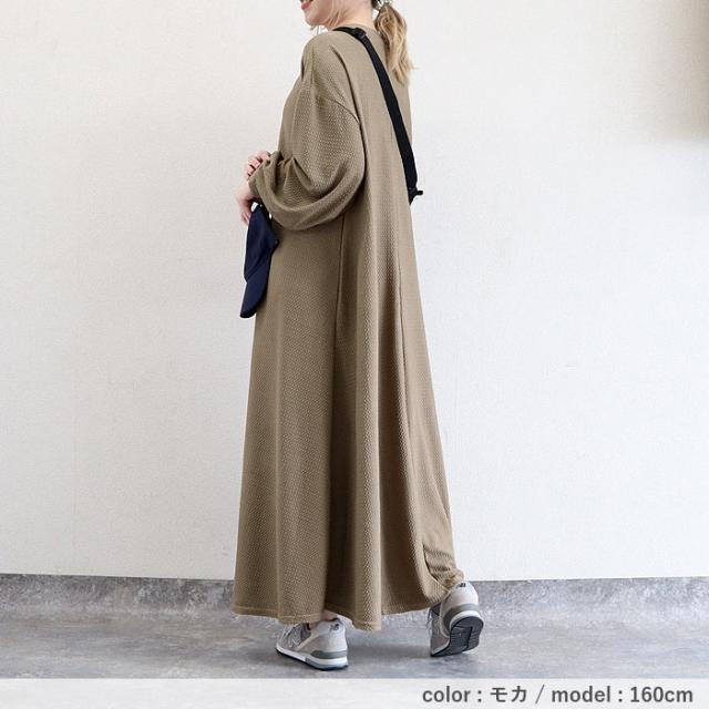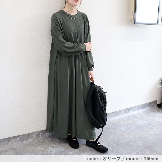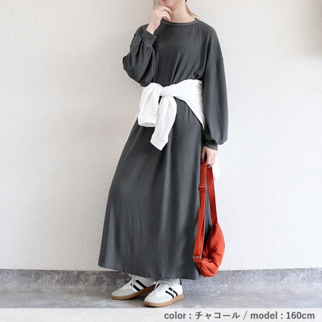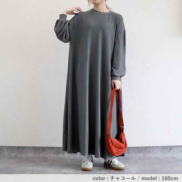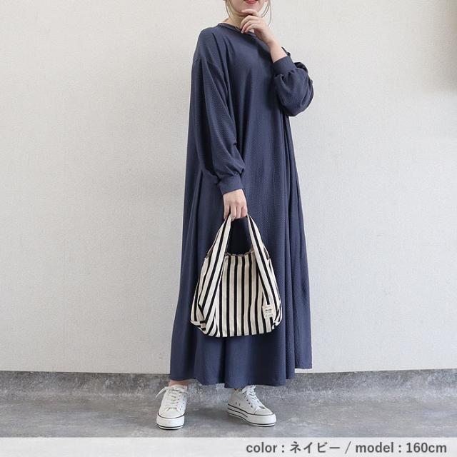 春新作 ワンピース レディース Aライン エンボス素材 フレアワンピース 秋 黒 重ね着 ルームウェア ワンマイル ロング丈 ゆったり ナチュラル カジュアル[郵3]^w725^ ■