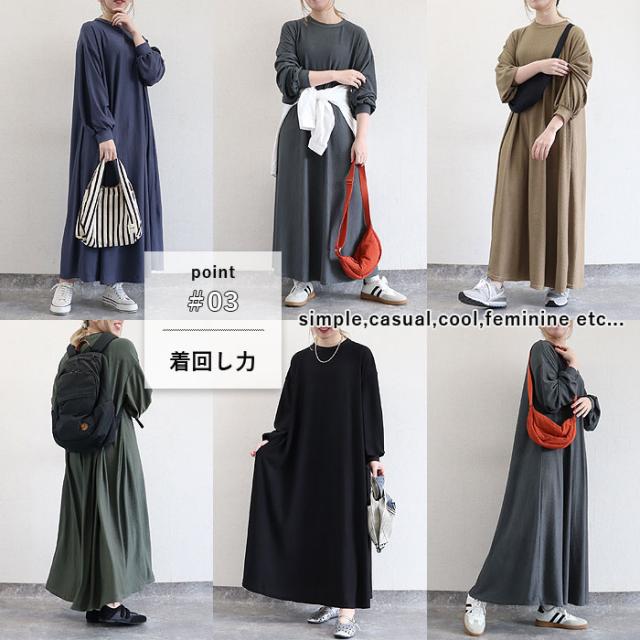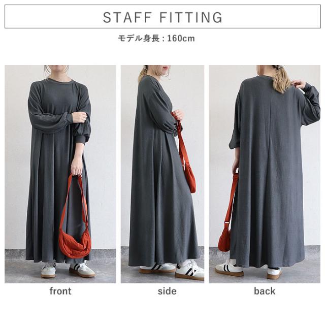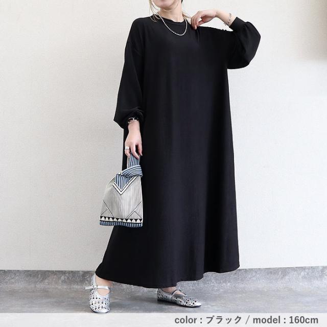 ワンピース レディース Aライン ゆったり ルームウェア ワンマイル ぽわん袖 ボリューム袖 たっぷり 体型カバー 伸縮性 速乾性 ストレッチ 伸びる イージーケア 洗濯OK 秋 春 黒 重ね着 ミドル丈 ワンサイズ ナチュラル 動きやすい シンプル レイヤード きれいめ カジュアル 40代 30代 50代 60代 大きいサイズ ゆったり 大人 カジュアル かわいい SALE セール uricca ウリッカ うりっか