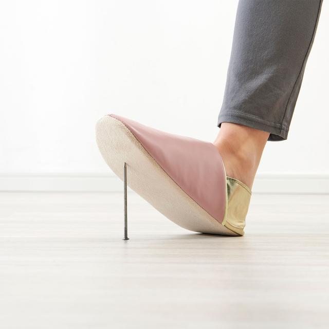 かかと部分は薄いのでスリッパ仕様として踏んで履いてもごわつかず、いざという時はさっとあげて脱げにくく。