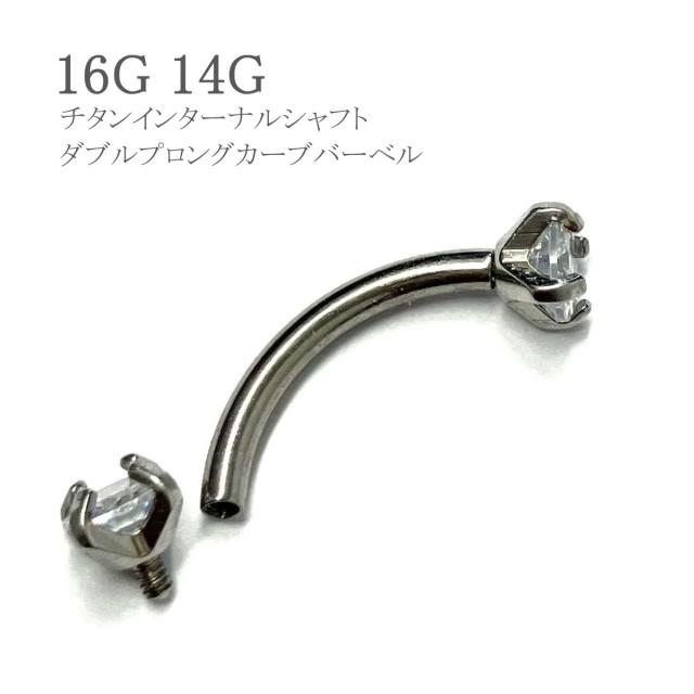 【チタンインターナルシャフト ダブルプロングカーブバーベル 16ゲージ 14ゲージ】