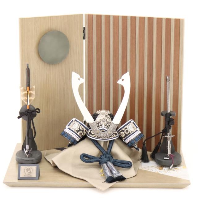 五月人形 兜平飾 雄山 7号 月読 ライト付き屏風 木目 幅40cm 月に唐草 端午の節句 節句 お祝い インテリア