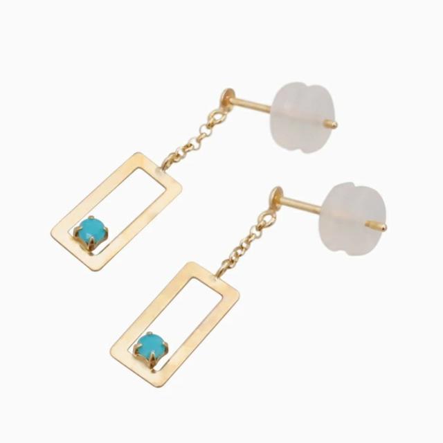 K10 10金 GOLD ゴールド スクエア トルコ石 ターコイズ ピアス ゴールドピアス 小さめ 華奢 アクセサリー ゴールドアクセサリー レディースピアス レディースアクセサリー チェーン