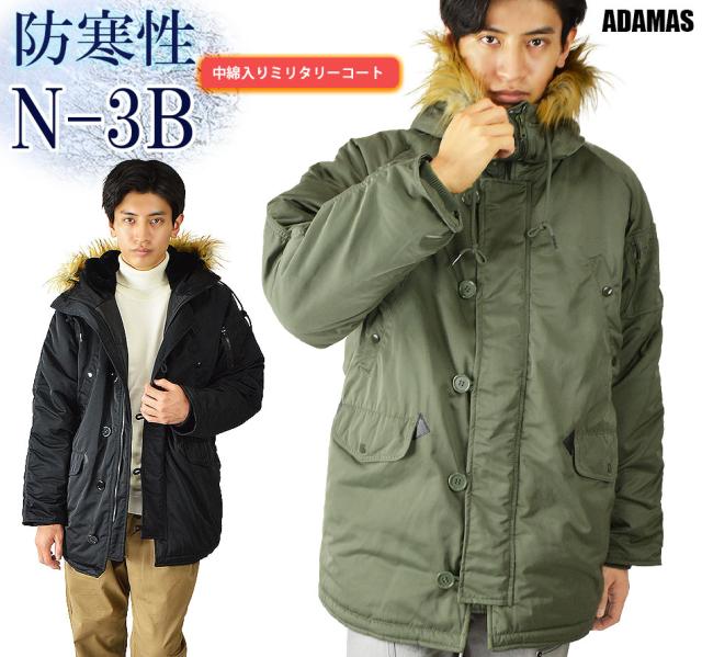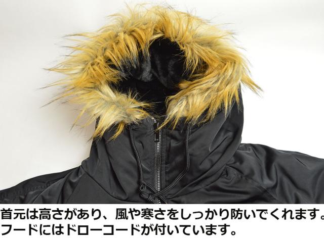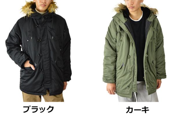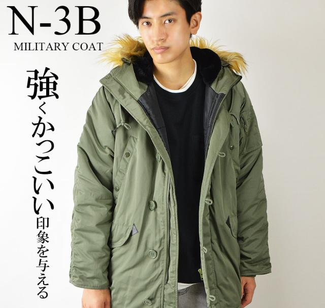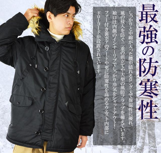 N-3B コート メンズ 撥水 中綿コート 中綿ジャケット ロング丈 フライトジャケット ロングジャケット ミリタリーコート N3B 中綿 ダウンジャケット 防寒ジャケット 防寒コート 防寒着 厚手 アウター コート 保温 黒 カーキ 秋 冬 冬服 冬用 新作 ミリタリージャケット