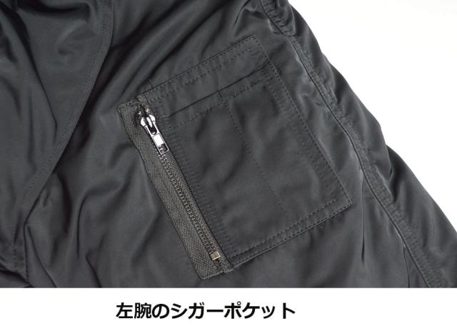 ■袖口はインナーリブ仕様で冷たい風をシャットアウト!雨風や埃の侵入を防ぐための大きなウインドフラップ付き、フロントはジップとボタンの2重構造で防寒性を高めます。