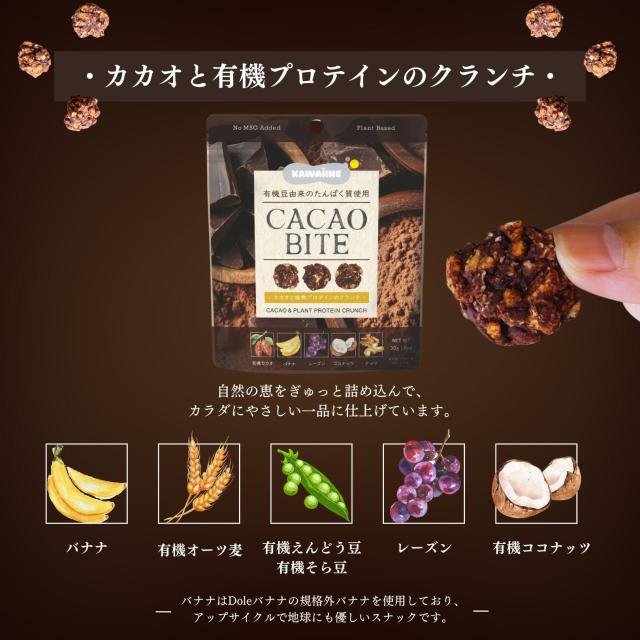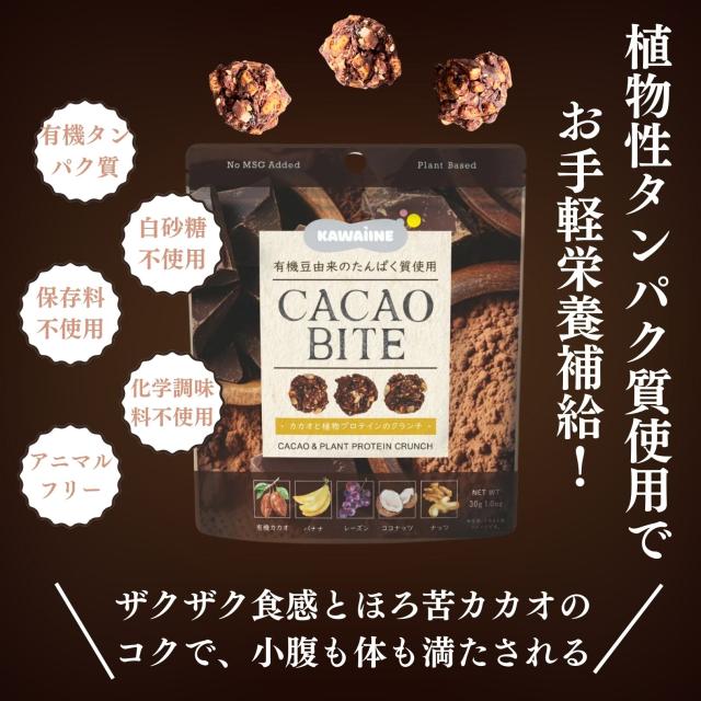 「3袋セット」【有機豆由来のタンパク質とリッチなカカオの香り】お菓子 CACAO BITE カカオと植物プロテインのクランチ 果物やナッツの自然な甘味 おつまみ ヘルシースナック 30g/袋 保存料不使用