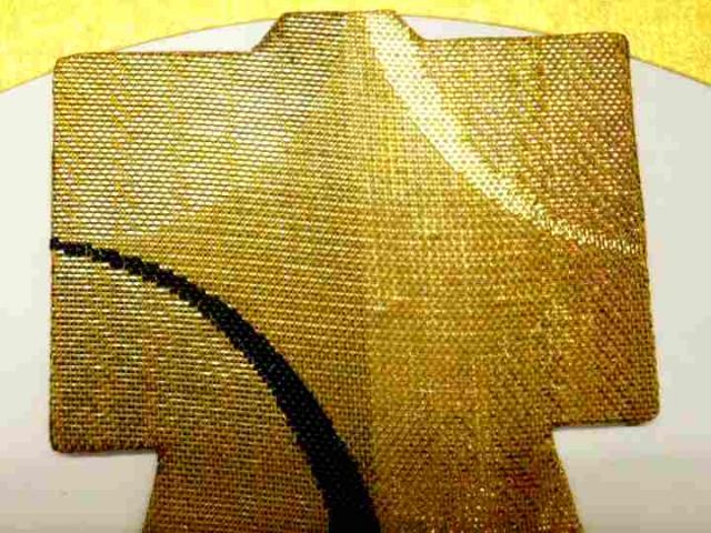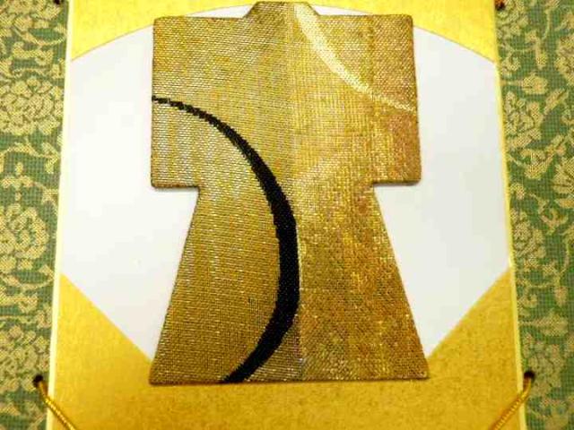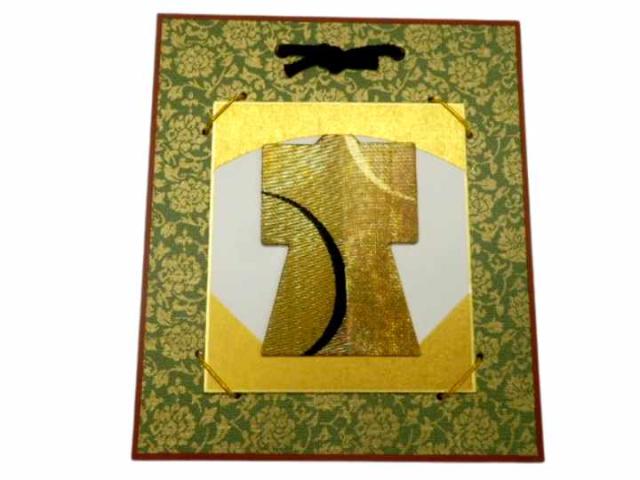 ミニ色紙 色紙 ハンドメイド 手作り 和風 正絹 掛け軸 タペストリー お土産 ハギレ 切り絵 作家 安田作 金地 月 色紙 ハンドメイド No.4