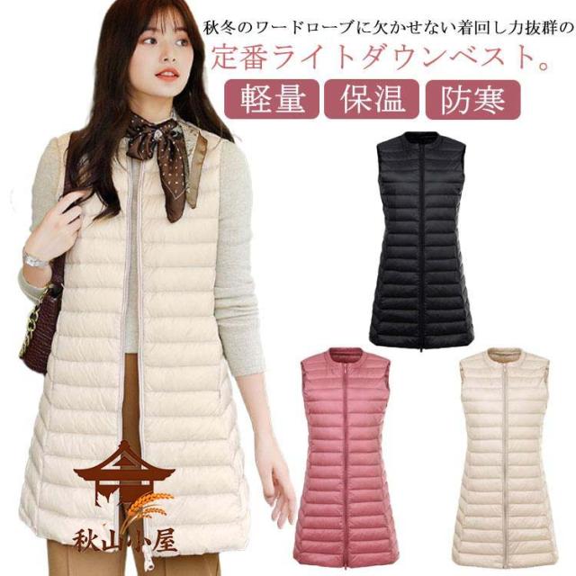 ダウンベスト ロング インナーダウンベスト レディース 40代 50代 ロングベスト ノーカラー ジャケット コート インナー ダウン スリム 軽量