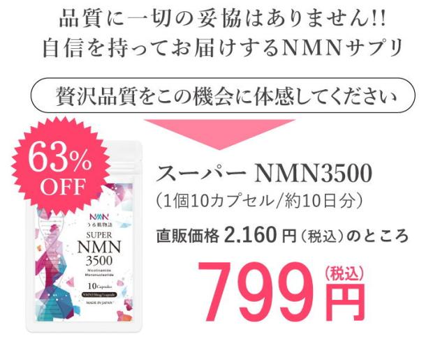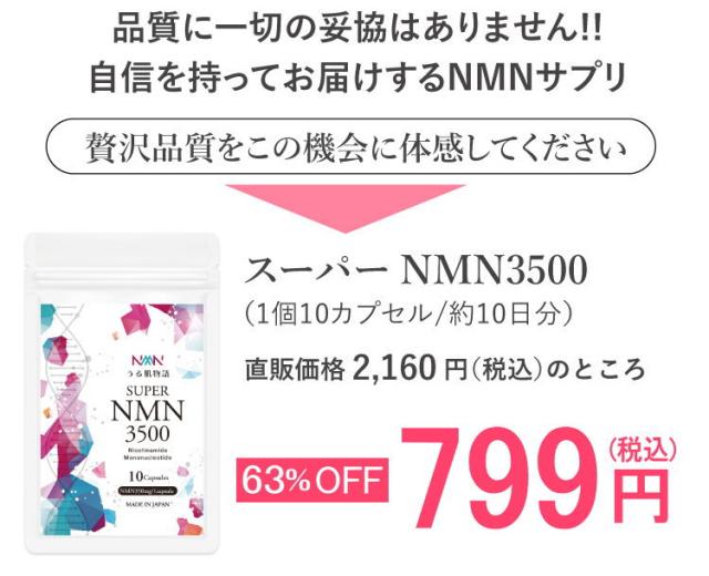 NMN 1粒350mg 高純度 NMNサプリ うる肌物語 スーパーNMN 3500(約10日分)nmnサプリメント 日本製 カプセル エイジングケア