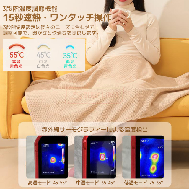 | 5WAYワッフル生地ブランケット|USB電源&コードレス設計 | ◆寒い季節でも、これ一枚で全身ポカポカ。 ◆ひざ掛け、肩掛け、掛け布団、腰巻き、足巻きとして使える5WAY仕様で、どんなシーンでも快適な温かさを届けます。 |