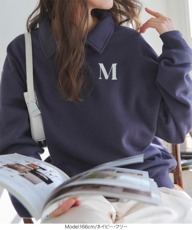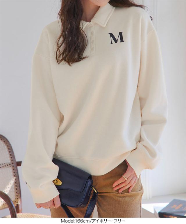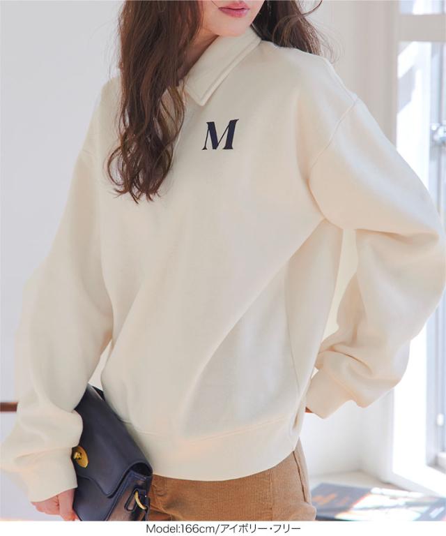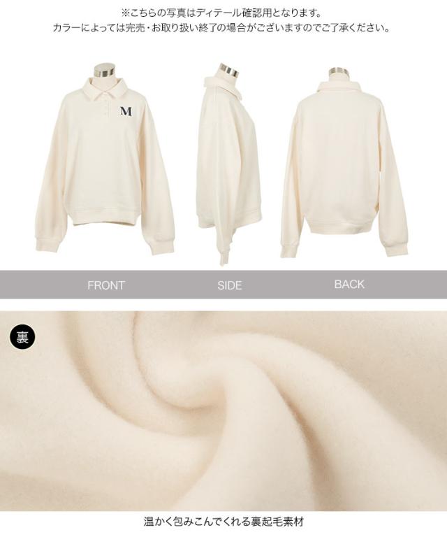 春新作 [ 裏起毛 ] ポロスウェット C7676 入荷済 レディース プルオーバー ポロ襟 長袖 トレーナー 暖かい ゆったり ポロシャツ 衿 襟 Vネック スウェットシャツ 裏起毛 秋冬 あったかい おしゃれ 通勤通学 日常着 普段着 着痩せ 細見え 体形