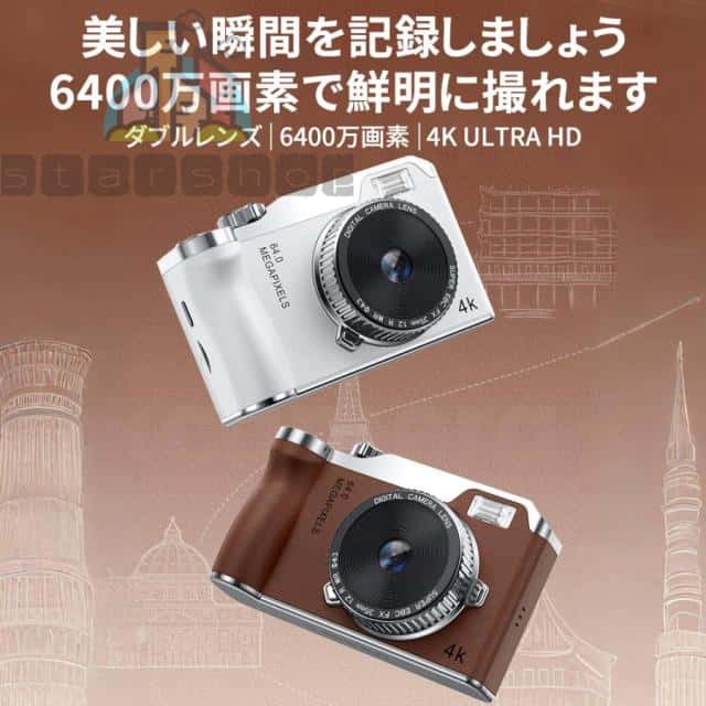 2025 デジカメ 安い デジタルカメラ 4K 6400万画素 高画質 16倍ズーム 自撮り 初心者 学生 ビデオカメラ オートフォーカス 手振れ補正 スマホ転送
